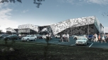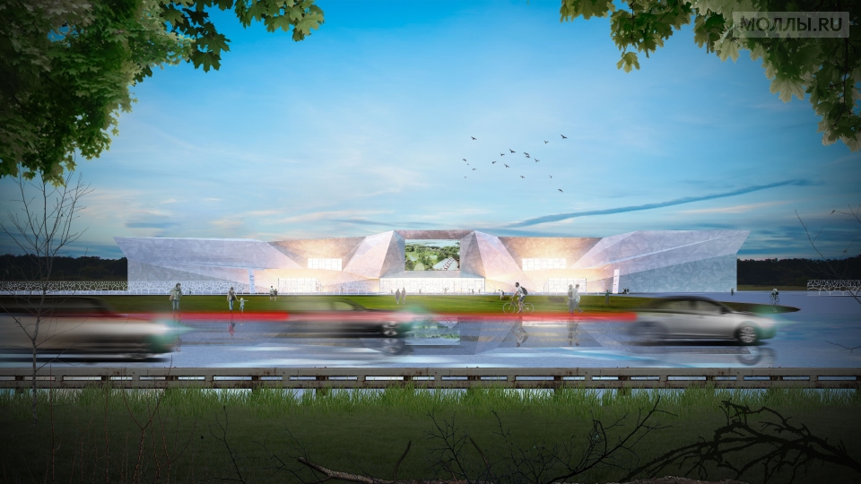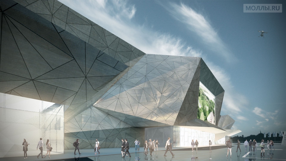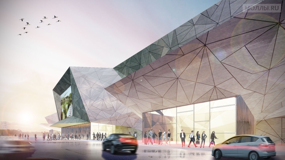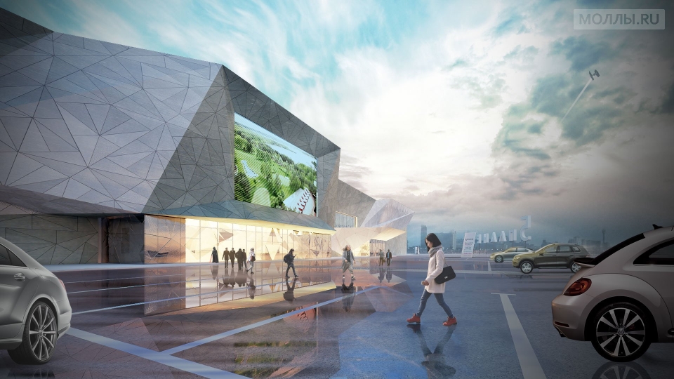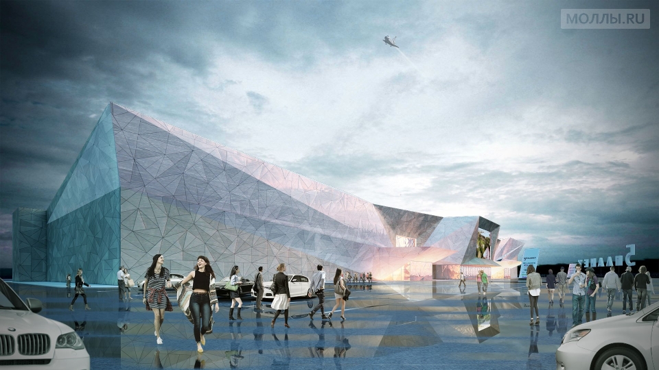 Благодаря необычной геометрии трехэтажное здание, выполненное по проекту известной архитектурной мастерской Тотана Кузембаева, напоминает космический корабль с двумя массивными крыльями. В этих крыльях будут расположены якорные арендаторы: продуктовый супермаркет «Перекресток», «Детский Мир», современный кинотеатр класса люкс «Magic Cinema», уникальный Музей «Москвич». А также множество магазинов одежды и обуви, детский развлекательный центр и зона фуд-корта.