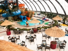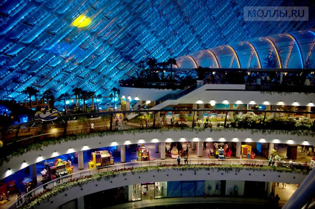 В ТРЦ "Хан Шатыр" расположены торговые и развлекательные площадки, различные кафе и рестораны, SPA & Wellness центр, а также изюминка Хан Шатыра – пляжный курорт с тропическим климатом, растениями и температурой +35 градусов круглый год.