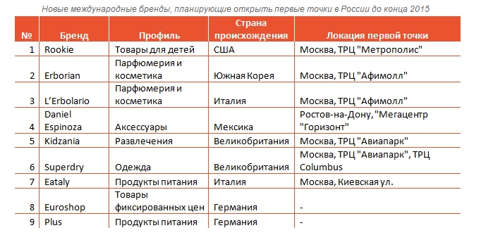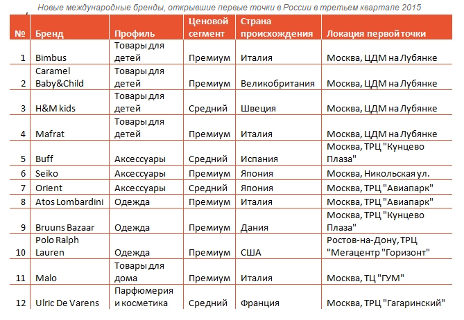 Новые международные бренды в III квартале 2015