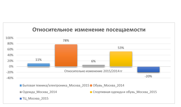 Генеральный директор ТРЦ Андрей Должиков, в частности, отметил, что «в праздничные дни – 9 и 10 мая посещаемость снизилась на 30% и 20% соответственно. 11 мая пошел рост + 8%. В среднем за неделю посещаемость просела на 6%. Эксперт связывает падение посещаемости с празднованием 70-летия победы и парадом «Бессмертный полк». Но ситуация на рынке ТРЦ неоднородная.