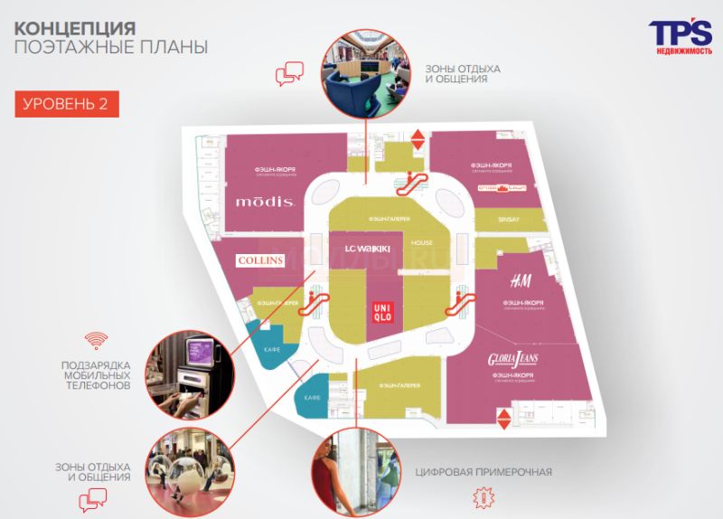 Магазины женской одежды: Colin's, Glenfield, Твое, Incanto, Milavitsa, Terranova, Modis, Mario Mikke, Conso Wear, Sport Point, Uno, 5КармаNов, Elis, Сквот, Anna Verdi, Mark Jacket, O'stin, Luxbikini, Intimissimi, Calzedonia, Hunkemöller, Emka, Novu Store, Kilpi, Каляев, Дисконт-центр Adidas & Reebok, Pantamo Jeans, Cr, Mark Formelle, Zarina, Gloria Jeans, Befree, Zuhra, Снежная Королева, Mango.