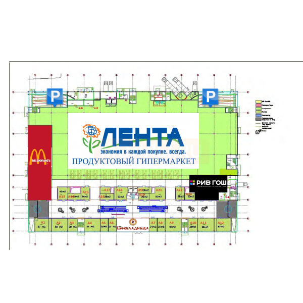Якорными арендаторами выступают гипермаркет «ЛЕНТА», кинотеатр «ЦЕНТРФИЛЬМ», магазин детских товаров «Кораблик», супермаркет одежды «Такко Fashion», ресторан быстрого питания «Макдоналдс». Также на объекте представлены такие сетевые операторы «Л’Этуаль», «KARI», «Intimissimi», «Сalzedonia», «ВAON», «Pandora», «Сats&Dogs», «Redmond», «Шоколадница», «Теремок», «Крошка-Картошка», «Лена Ленина» и другие.