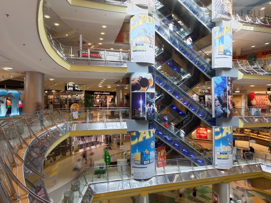 Якорные арендаторы: гипермаркет электроники "Техносила", развлекательный центр Fun City, мультиплекс "Каро Фильм".