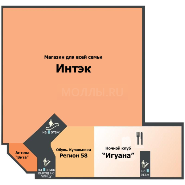 Сопутствующие арендаторы: Л´Этуаль, Евросеть, Белый Ветер Цифровой, O’stin, Пятерочка, ЦентрОбувь, Инмарт.