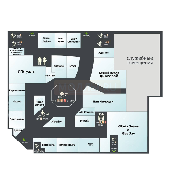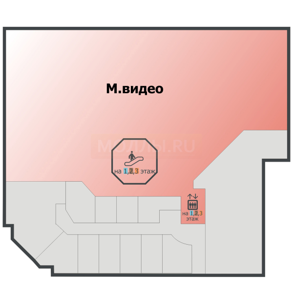 Якорные арендаторы: М.Видео, MODIS, Gloria Jeans.