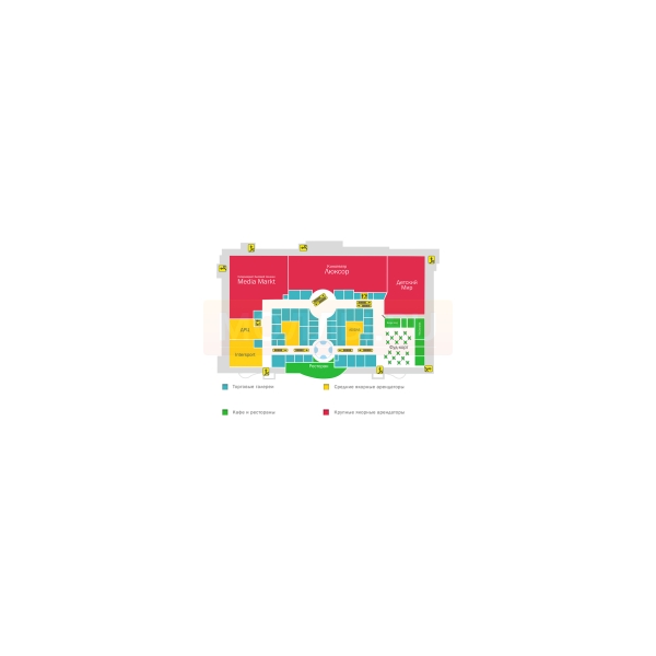 · Зона food-court: MсDonalds, Бургер Кинг, Крошка Картошка, Сбарро, Subway