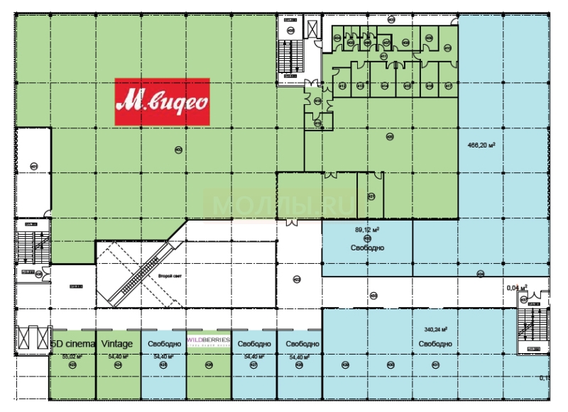 На первом этаже комплекса располагается продуктовый супермаркет Eurospar, декоративная зона с фонтаном, уютная кофейня, Л'этуаль, магазины импульсного спроса, сетевые магазины; на других этажах расположены магазины "Спортмастер", "М.Видео", "Детский Мир", "O'Stin", "Reserved", "befree", "Savage", "Sela", "Твое" и другие сетевые магазины.