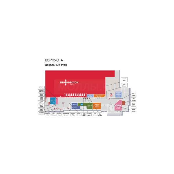 Якорные арендаторы: Техносила, Дочки-сыночки, Перекресток, Боулинг Космик, Аптеки 36,6, Фитнес клуб, Якитория, ЦентрОбувь, Лазурит, Fix Price, Vesardi