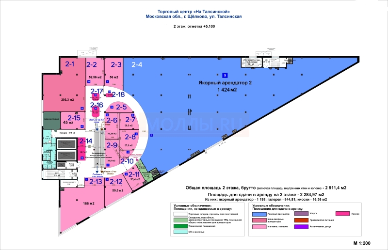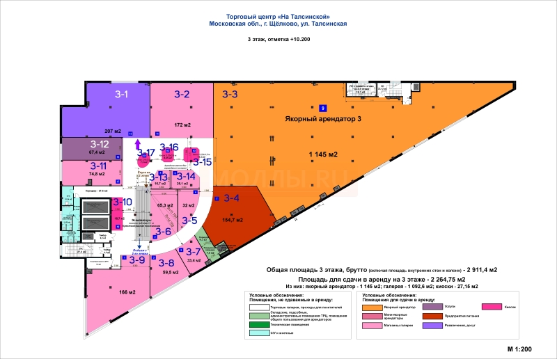 Целевая аудитория - жители Щелково, Ивантеевки, Фрязино (ТЦ, расположен на транзитных потоках) Торговый центр районного масштаба средней ценовой категории.