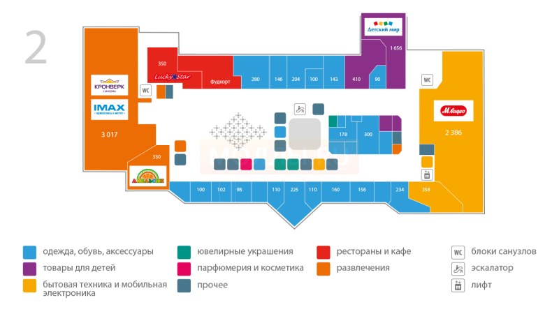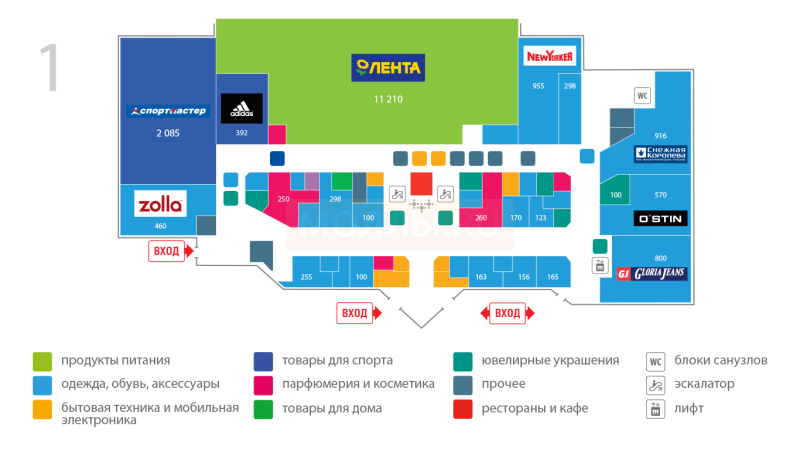 Якорные арендаторы торгово-развлекательного комплекса: продовольственный гипермаркет «Лента», гипермаркет бытовой техники и электроники «М.видео», супермаркеты спортивных товаров «Спортмастер», детских товаров «Детский мир» и верхней одежды «Снежная королева», магазин молодёжной одежды New Yorker, магазины косметики и парфюмерии «Рив Гош» и «Л`Этуаль». Также в ТРЦ представлены магазины брендов: Befree, Gloria Jeans, O`Stin, Chester, Adidas, Zolla, Baon, Incity, Evona, «Буду мамой», «Адамас», «Линии любви», Vitacci, Inсity, Intimisimi, Promod, Francesco Marconi, Zenden, Milavitsa, Elis, Kari, Kari kids, Orby, Gulliver, DNS, Kanzler, Yves Rocher, Pandora, «Золотой», «Эстет», «585», «Айкрафт», «Счастливый взгляд». В составе развлекательной компоненты ТРЦ «Макси»: многозальный кинотеатр «Кронверк синема» с поддержкой технологии IMAX, семейный развлекательный центр «Апельсин», ресторан «Lucky Star», кофейня, фудкорт на 7 концепций.