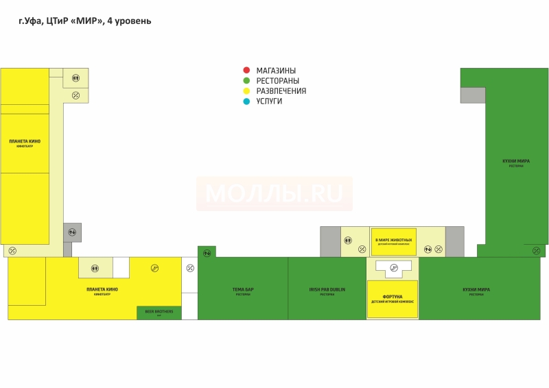 Центр торговли и развлечений «Мир» - один из первых знаковых проектов в сфере коммерческой недвижимости в г. Уфа, удерживающий лидерские позиции на рынке на протяжении более 15 лет.
