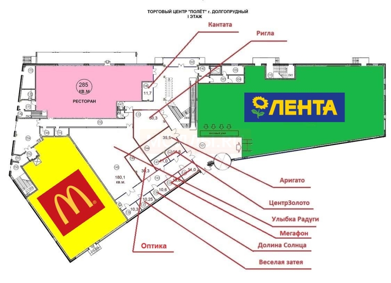 Арендаторы торговой галереи: аптека Ригла, магазин косметики и бытовой химии Улыбка Радуги, магазин чая и кофе Кантата, салон связи Мегафон, ювелирный салон Центрзолото. Открыт ресторан «Моремания», который предлагает блюда из рыбы и морепродуктов.