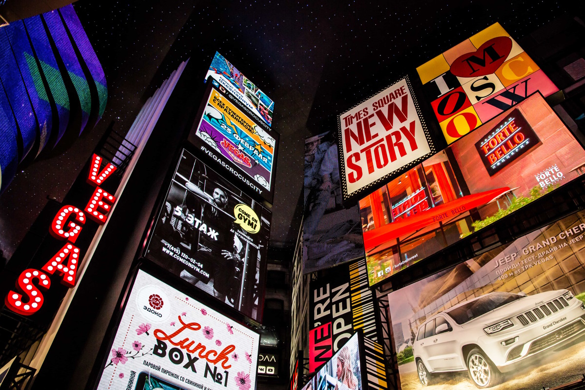 Здесь воссозданы точные копии знаменитых нью-йоркских улиц Times Square с бегущими строками и множеством экранов, Rockefeller Center с гигантской статуей Прометея на воде и огромным катком. Также здесь расположены не менее известные улицы – Madison avenue и 47th street.