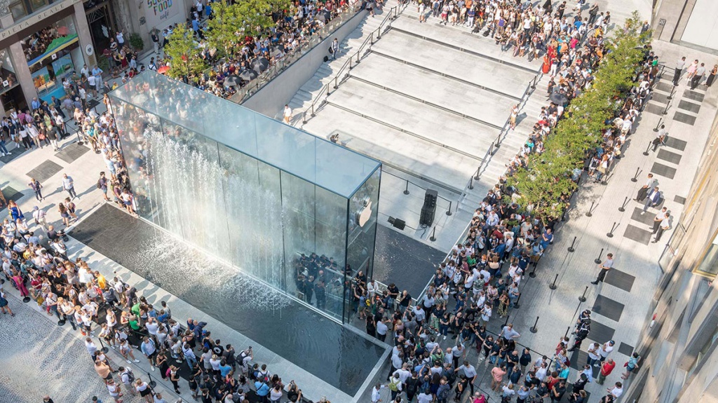 Всем понятно, с чего надо начинать такие статьи. Говоришь «флагманский», подразумеваешь Apple Store в Нью-Йорке. Хотя по-настоящему уникальных в архитектурном плане магазинов Apple хватает по обе стороны океана, самый культовый магазин, а может и визитная карточка бренда - тот самый, в футуристическом кубе из стекла, на 5-й Авеню. Уже ставший классикой, без которого не мыслим Манхеттен. Хотя как насчет нового Apple Store в центре Милана, над дизайном которого снова поработал Норман Фостер? На наш взгляд, он тоже весьма неплох.