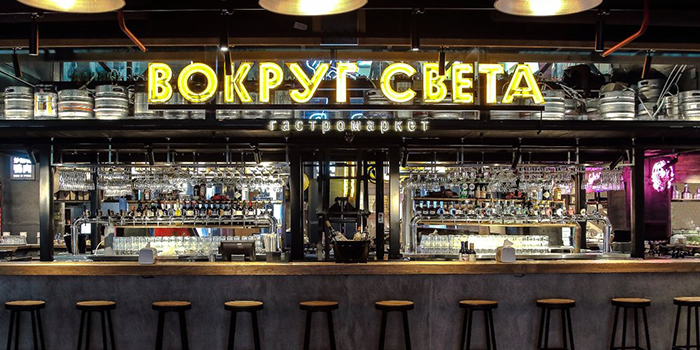 Популярный гастромаркет «Вокруг света» на Никольской улице - проект, объединяющий 24 яркие фуд-концепции от рестораторов Аркадия Новикова, Бориса Зарькова и Владимира Мухина. Гастромаркет на главной пешеходной улице Москвы представляет круглосуточные завтраки и доставку, бар и веганскую еду, а также блюда индийской, мексиканской, гавайской или узбекской кухни. На одной площадке работают заведения от демократичных со средним чеком 200-300 рублей до премиумных с чеком 1500-2000 рублей. Например, на «Токийском рынке» подают свежие суши и сашими, в «1-й Крабовой» - морепродукты на льду, а в «Бухаре» - шашлык, лагман и настоящий плов.