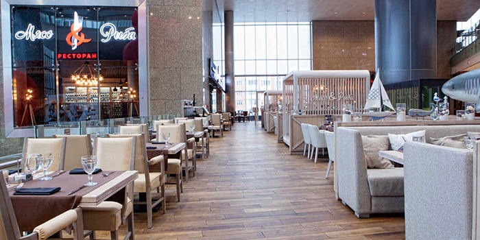 Мясо & Рыба - проект, ставший сетевым, который сочетает формат классического рыбного ресторана и стейк-хауса. Ресторан разделен на две тематические зоны - для делового общения и для встреч с семьей и друзьями. В меню представлены блюда европейской кухни из рыбы и мяса - стейки (рибай, стриплойн, денвер), свежие морепродукты и свежие салаты. В барной карте, которая составлена со вкусом, гостей ресторана ждут сухое, пенное и крепкое со всего мира. Выдержки из меню: стейк - 700-1780 рублей, устрицы - от 190 рублей, большое рыбное ассорти - 3990 рублей.