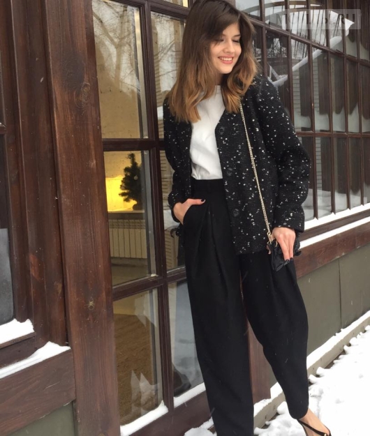 Примеры цен в магазинах 12Storeez в Москве: стеганое шерстяное пальто - 17 900 рублей, хлопковая рубашка - 4900 рублей, двубортный жакет и брюки - 14 700 рублей, футболка мужского кроя - 2300 рублей, миди-платье из бархата - 5800 вместо 9800 рублей.