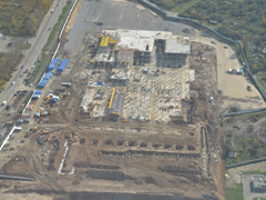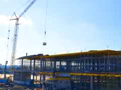 На данном этапе строительство, осуществляемое ООО «Брянская инвестиционно-строительная компания» («БИСКО»), идёт очень быстрыми темпами. По словам директора компании-генподрядчика, Кирилла Михайлова «первое, что позволяет нам наращивать темпы — правильная организация работ. Благодаря использованию новейшей техники, не имеющей аналогов в регионе, и привлечению большого числа высококвалифицированных специалистов, мы можем одновременно вести работы по всем направлениям, что позволяет сжать график в несколько раз — здание строится блоками и работы на каждом из них ведутся не последовательно, а параллельно. Привлеченная нами проектная группа — совершенно уникальные специалисты. После оптимизации проекта мы снизили трудоемкость и логистические затраты, серьезно увеличиваются темпы работ. Так и складывается правильная экономия: мы покупаем дорогую технику и используем много оборудования, но на выходе имеем колоссальный экономический результат. Когда вся техника и все поставки материалов подконтрольны нам, это не только не оставляет места для неразберихи, но и позволяет очень жестко контролировать качество работ».