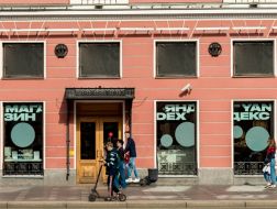 Магазин располагается в Литературном доме, на пересечении Невского проспекта с набережной Фонтанки.