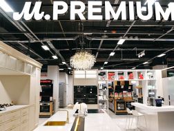 В пространстве представлены бренды Bertazzoni, Kuppersbusch, Smeg, Miele, Liebherr, Asko, WMF и LauraStar.