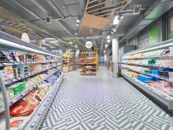 Супермаркет выступает якорным арендатором торгового центра «Платформа» в Транспортном переулке.