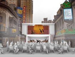 Конструкция над проезжей частью не будет мешать проезду машин днём, а вечером превратится в сцену, перед которой прямо на дороге можно рассадить зрителей.