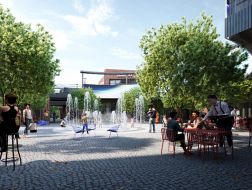 Девять двухэтажных корпусов, амфитеатр и свето-музыкальный фонтан; план –  сентябрь–октябрь 2025 года, формат позиционируют как один из первых полноценных open-mall в России.
