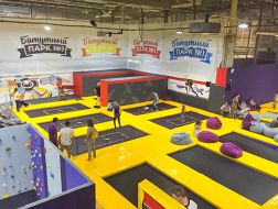 Батутный парк расположен на втором этаже комплекса и занимает площадь более 1000 кв.м.