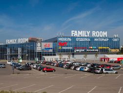 Первый Family Room был открыт в рамках редевелопмента бывшего торгово-развлекательного центра «Рио» на Киевском шоссе.
