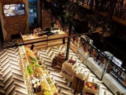 Фудхолл располагается на третьем этаже торгового центра на площади около 500 квадратных метров