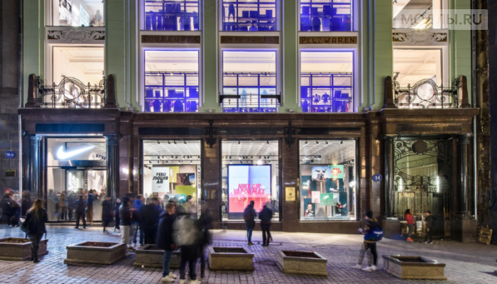 Флагманский московский магазин Nike открылся в здании в стиле арт-нуво, построенном в 1903 году и известном в качестве государственного дома моды в 40-х годах прошлого столетия. Команда дизайнеров под управлением Nike провела реновацию фасада, чтобы подчеркнуть оригинальный брендинг. У входа в здание также будет установлена памятная доска, посвященная богатой культурной истории дома.