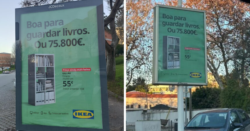 Мебельный гигант высмеял последний политический скандал в Португалии. IKEA разместила на улицах главных городов по всей стране рекламу книжного шкафа со слоганом: "Подходит для хранения книг. Или 75 800 евро".