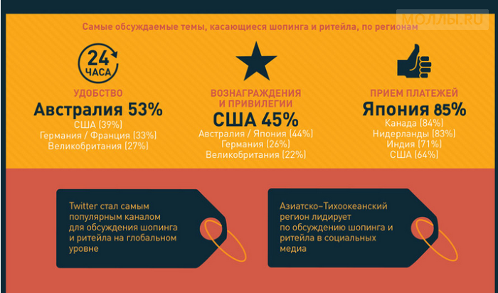 Любопытно, что по итогам исследования Twitter был признан основной глобальной социальной сетью, в которой ведутся активные обсуждения тем шопинга и розничной торговли.