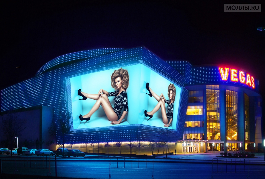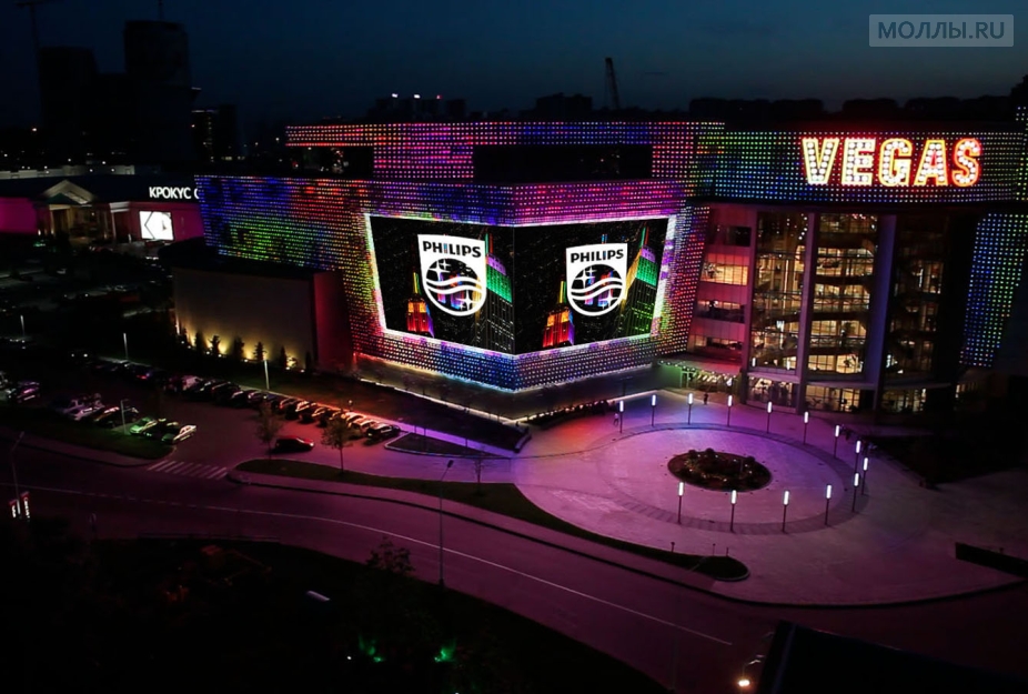 Наиболее крупным проектом медиафасада с высоким разрешением (240 тыс. светодиодных источников света, 16 млн цветов, площадь 3,6 тыс кв. м.) является конструкция в ТРЦ «Вегас Крокус Сити» на территории Крокус Сити. Это первый в России медиафасад, повторяющий сложную архитектуру здания и одновременно интегрированный в вентилируемый фасад.