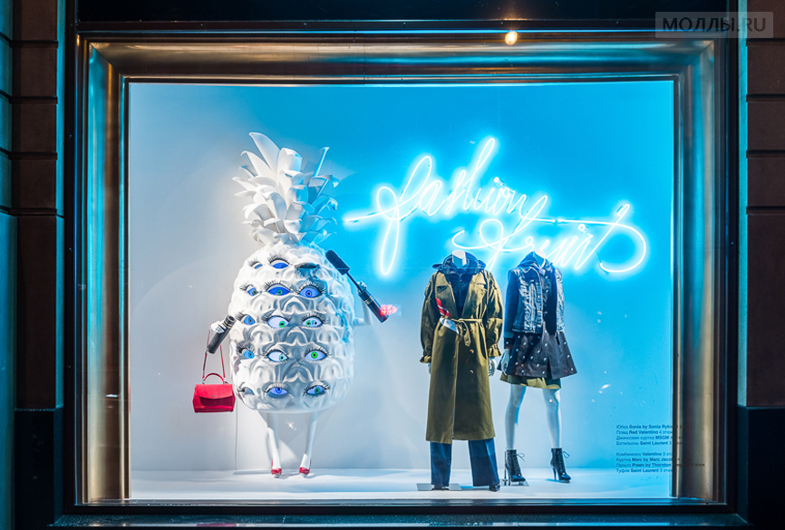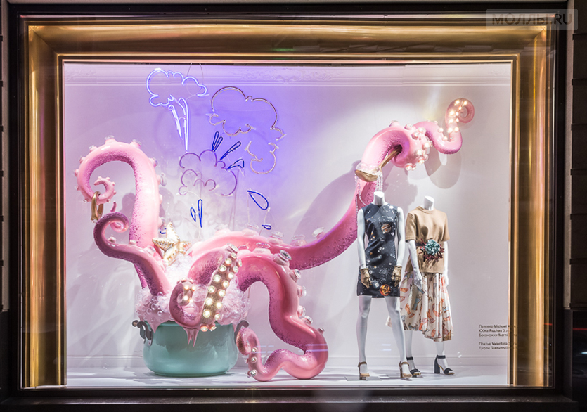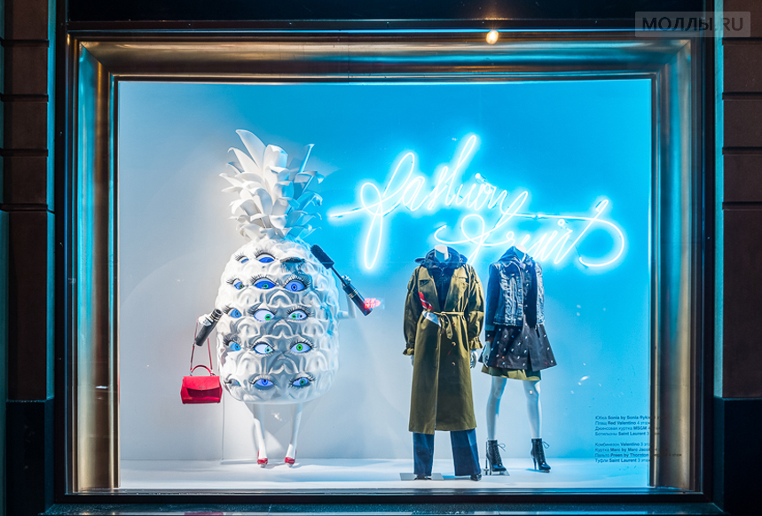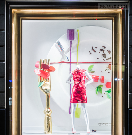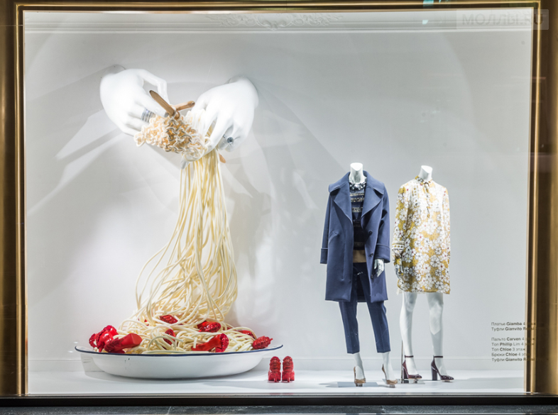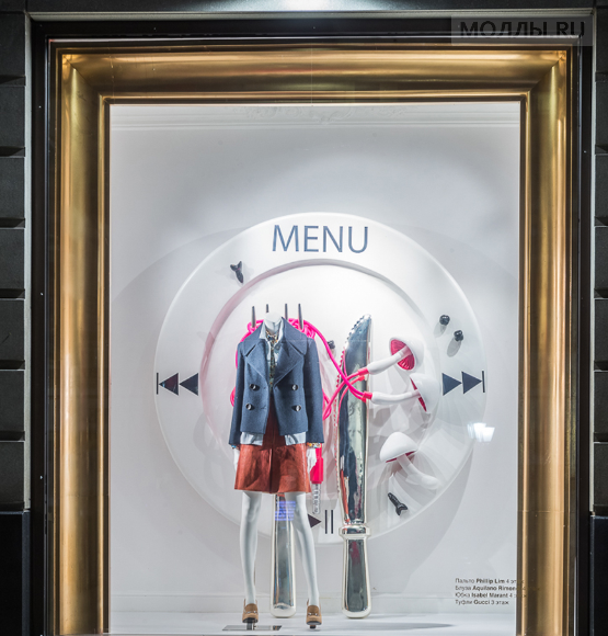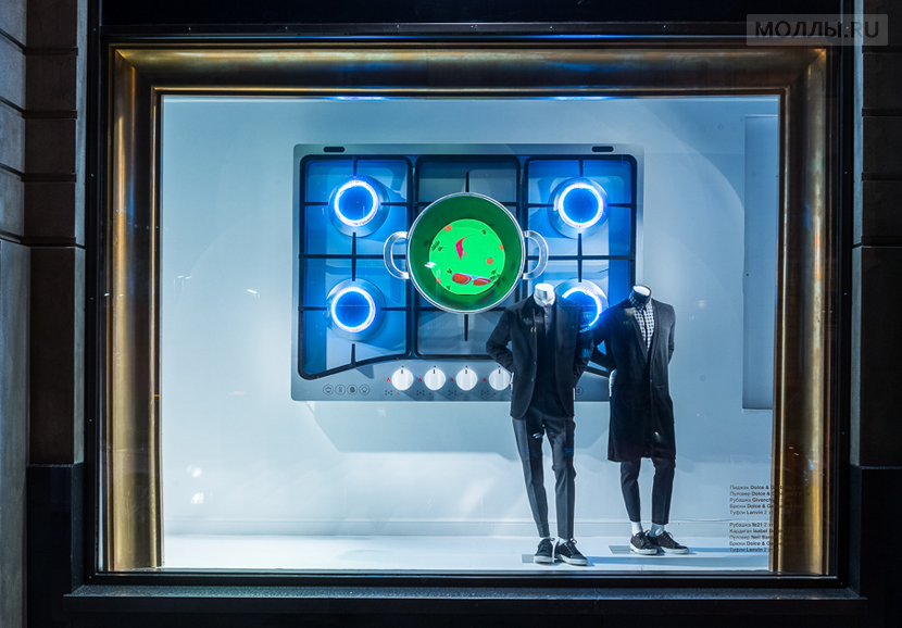 В процессе создания эскизов витрин креативная команда соединила идею домашнего уюта с модой. В витринах на улицах Неглинная и Петровка, а также на Кузнецком мосту появились гигантские предметы кухонной утвари вместе с нарядами из новых коллекций Dolce&Gabbana, Valentino, Tom Ford, Ralph Lauren, Givenchy, Saint Laurent, Alexander McQueen, Marni, Bottega Veneta, Dries Van Noten и других марок.