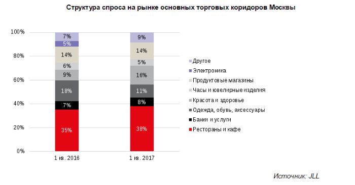 По результатам первого квартала 2017 года средний уровень вакантности на основных торговых улицах Москвы снизился на 4,1 п.п. в годовом сравнении и составил 8,4%, свидетельствуют данные отчета компании JLL.