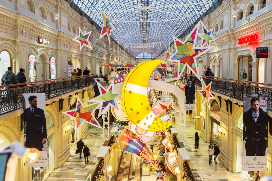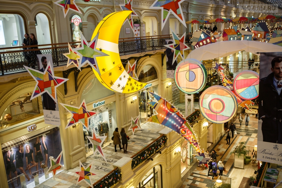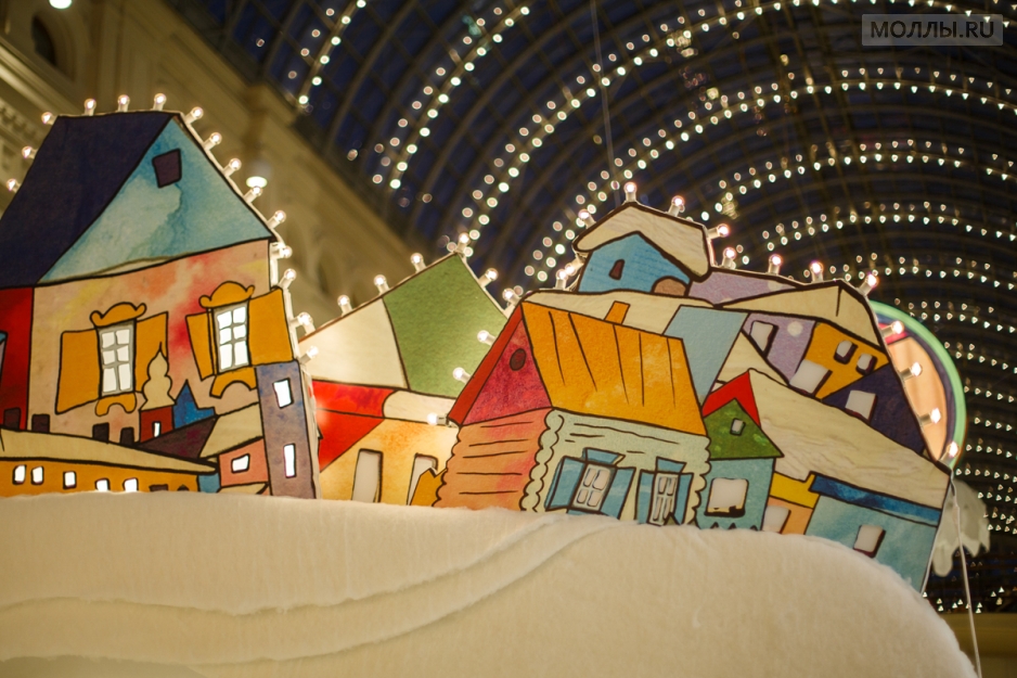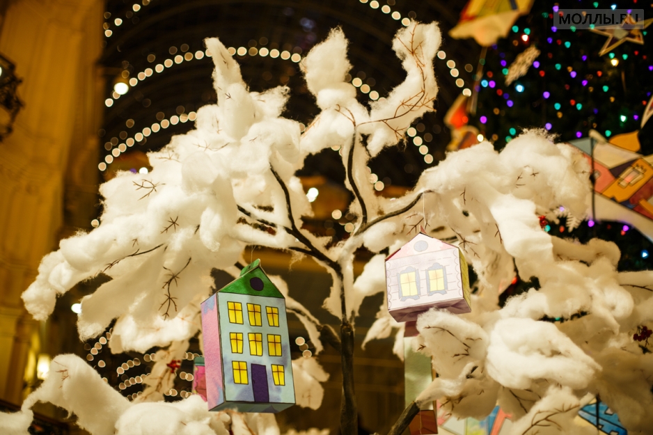 Новый год Главный универсальный магазин на Красной площади встретит в ярком и красочном наряде, вдохновленном работами Василия Кандинского и Марка Шагала. Под главной ГУМовской елкой в центре у фонтана шумит новогодняя ярмарка. И какой же Новый год без письма главному зимнему волшебнику? В центре ГУМа начал работать «Телеграф Деда Мороза».