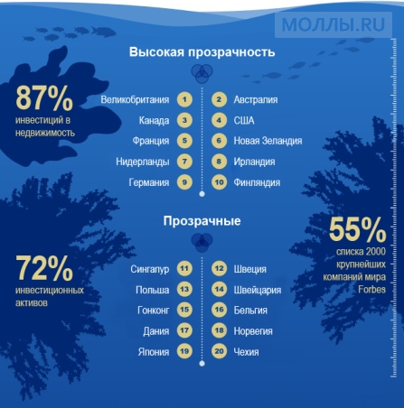 Аналитики отмечают, что две трети рынков за прошедшие два года продемонстрировали повышение прозрачности. На сегодняшний день на долю 10 самых прозрачных рынков приходится 75% всех инвестиционных сделок с коммерческой недвижимость.