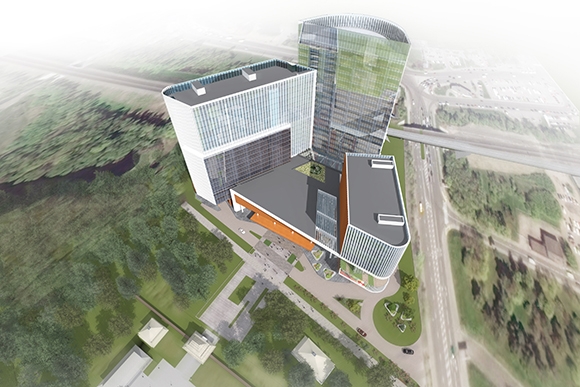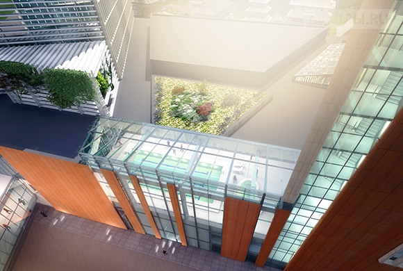 Комплекс будет сформирован разновысотными контрастными зданиями, которые будут объединены стилобатной частью, с главным входом в комплекс, выходящим в ландшафтный парк «Китайский сад» площадью 47 000 кв.м.