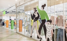 В оформлении использованы светлые природные оттенки — бежевый, серый, зеленый. Также добавлены деревянные и плетеные поверхности, зеленые растения. В некоторых магазинах представлено игровое пространство оформлено в виде перевернутой картонной коробки, где дети могут поиграть в продавцов и покупателей.